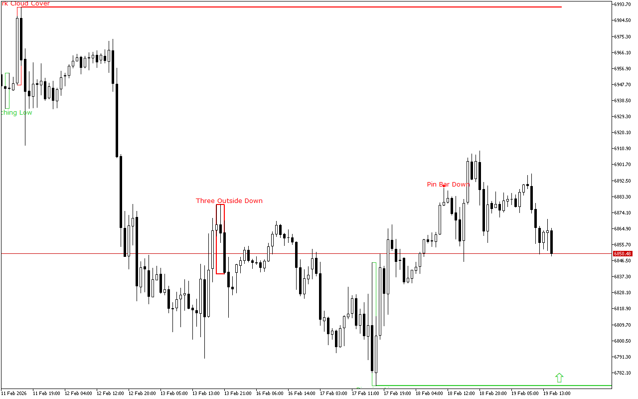 The Penetrating Line pattern formed this level. The pattern consists of two candles: the first one has a long black body, the second one has a white body. The second candle opens with a gap down and closes above the middle of the first candle’s body.