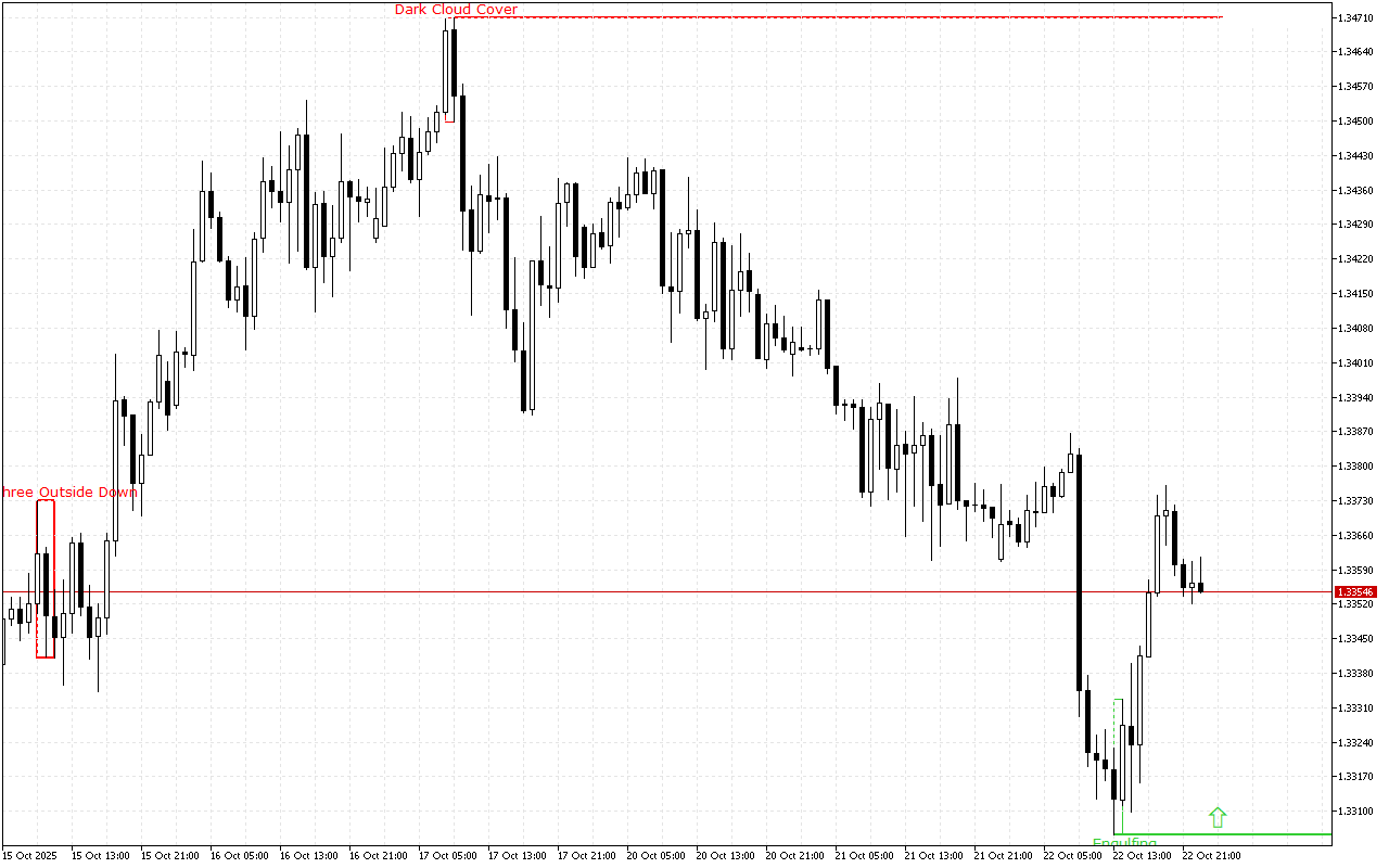 Ce niveau a été formé par la figure de la couverture nuageuse sombre. Il se compose de deux bougies : la 1ère est longue et blanche, et la 2ème est noire. La 2ème s’ouvre sur un écart haussier et se termine en dessous du milieu du corps réel de la 1ère.