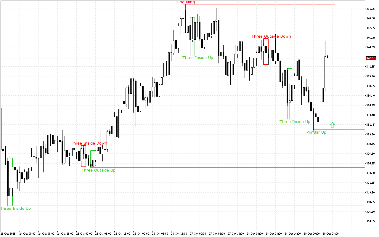 Le support le plus proche est fixé à 330.53.
