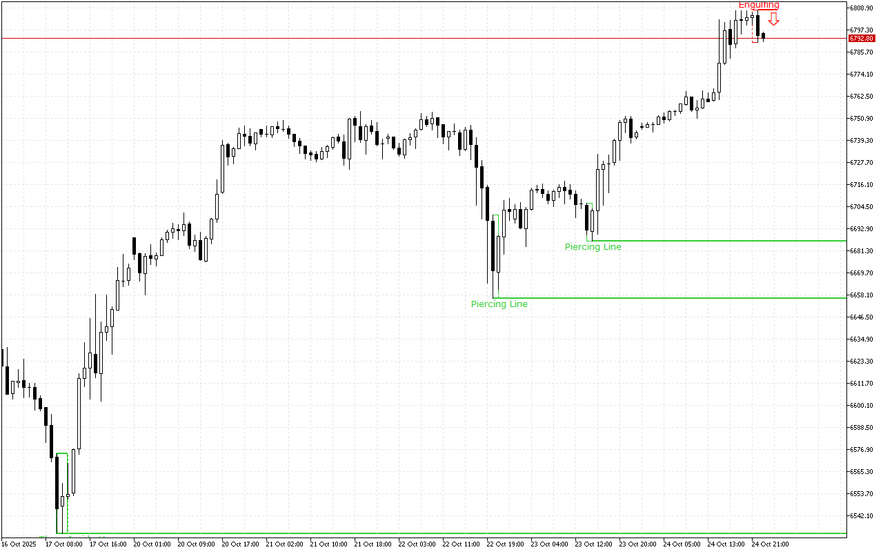 Le niveau de résistance actuel se situe à la barre 6807.58.