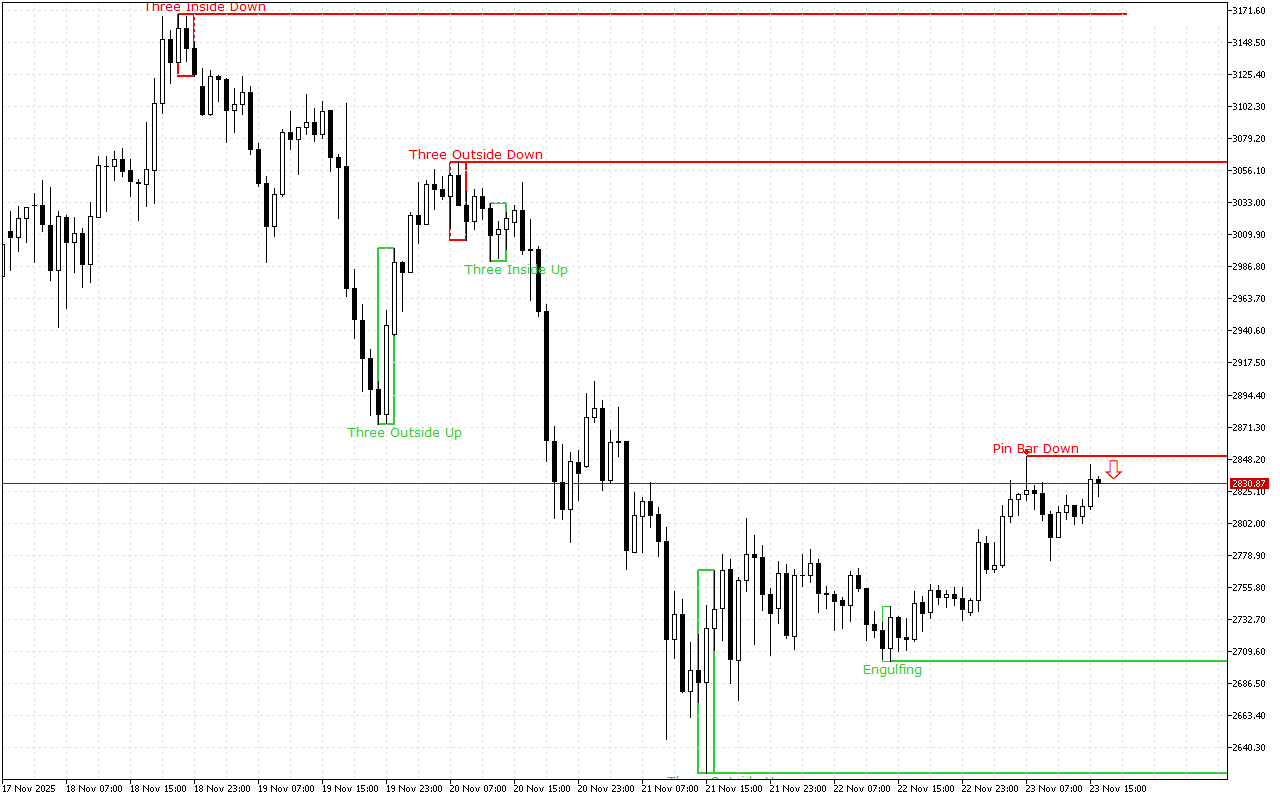Le dernier modèle formé sur le graphique donne la priorité aux positions courtes. Ce signal est également soutenu par la dynamique de mouvement des prix sur l’échelle de temps supérieure.