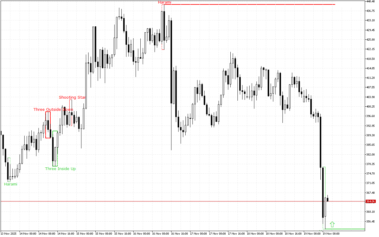 Ce niveau a été formé par le modèle Bearish Harami, qui est constitué de deux chandeliers japonais où le deuxième chandelier avec un corps plus petit se trouve à l’intérieur du corps du premier chandelier.
