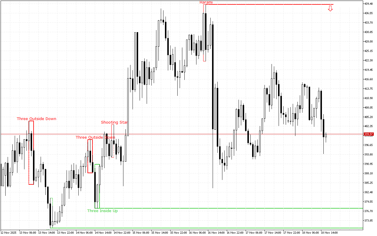 Ce niveau a été formé par le modèle Bearish Harami, qui est constitué de deux chandeliers japonais où le deuxième chandelier avec un corps plus petit se trouve à l’intérieur du corps du premier chandelier.