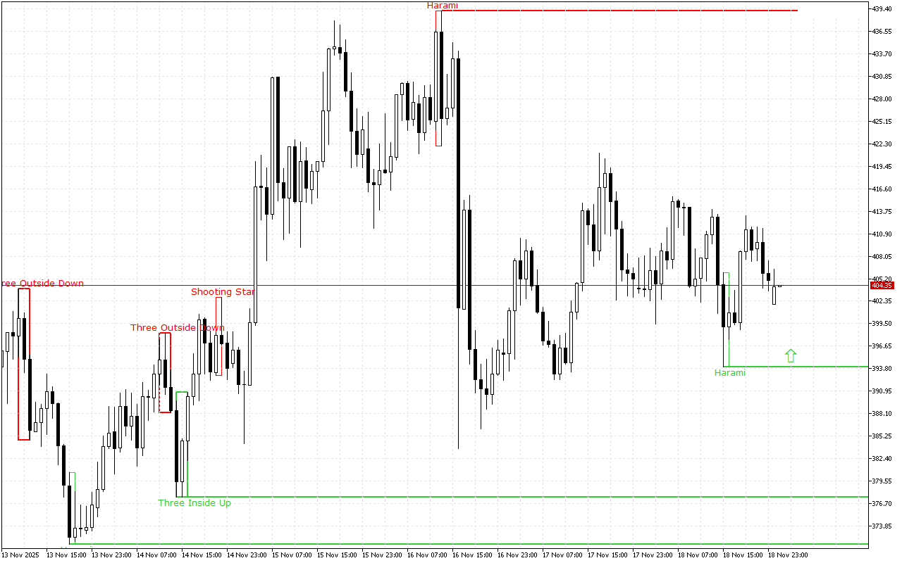 Ce niveau a été formé par le modèle Bearish Harami, qui est constitué de deux chandeliers japonais où le deuxième chandelier avec un corps plus petit se trouve à l’intérieur du corps du premier chandelier.