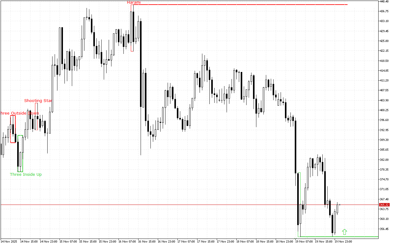 Ce niveau a été formé par le modèle Bearish Harami, qui est constitué de deux chandeliers japonais où le deuxième chandelier avec un corps plus petit se trouve à l’intérieur du corps du premier chandelier.