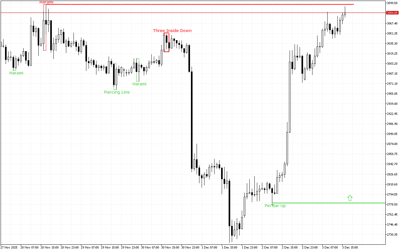 Le niveau de résistance significatif le plus proche se situe à la barre 3097.12.