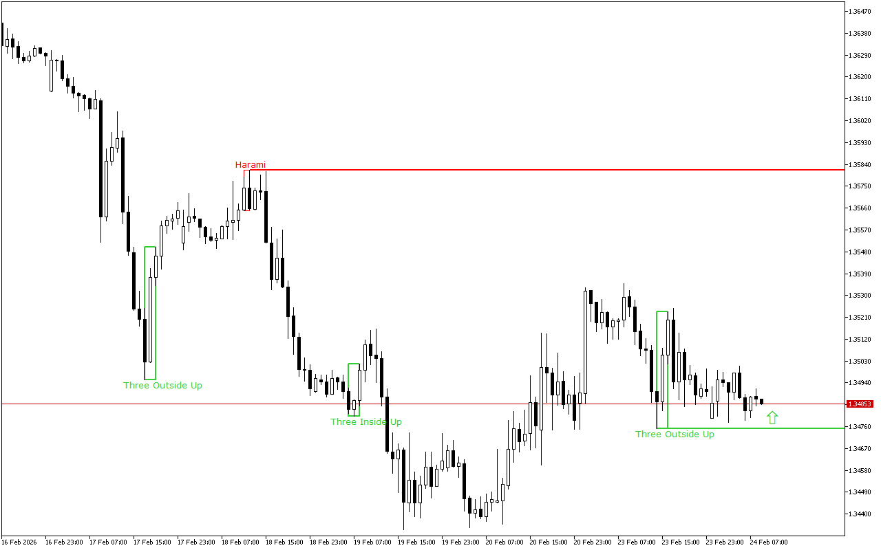 Ce niveau a été formé par le modèle Bearish Harami, qui est constitué de deux chandeliers japonais où le deuxième chandelier avec un corps plus petit se trouve à l’intérieur du corps du premier chandelier.