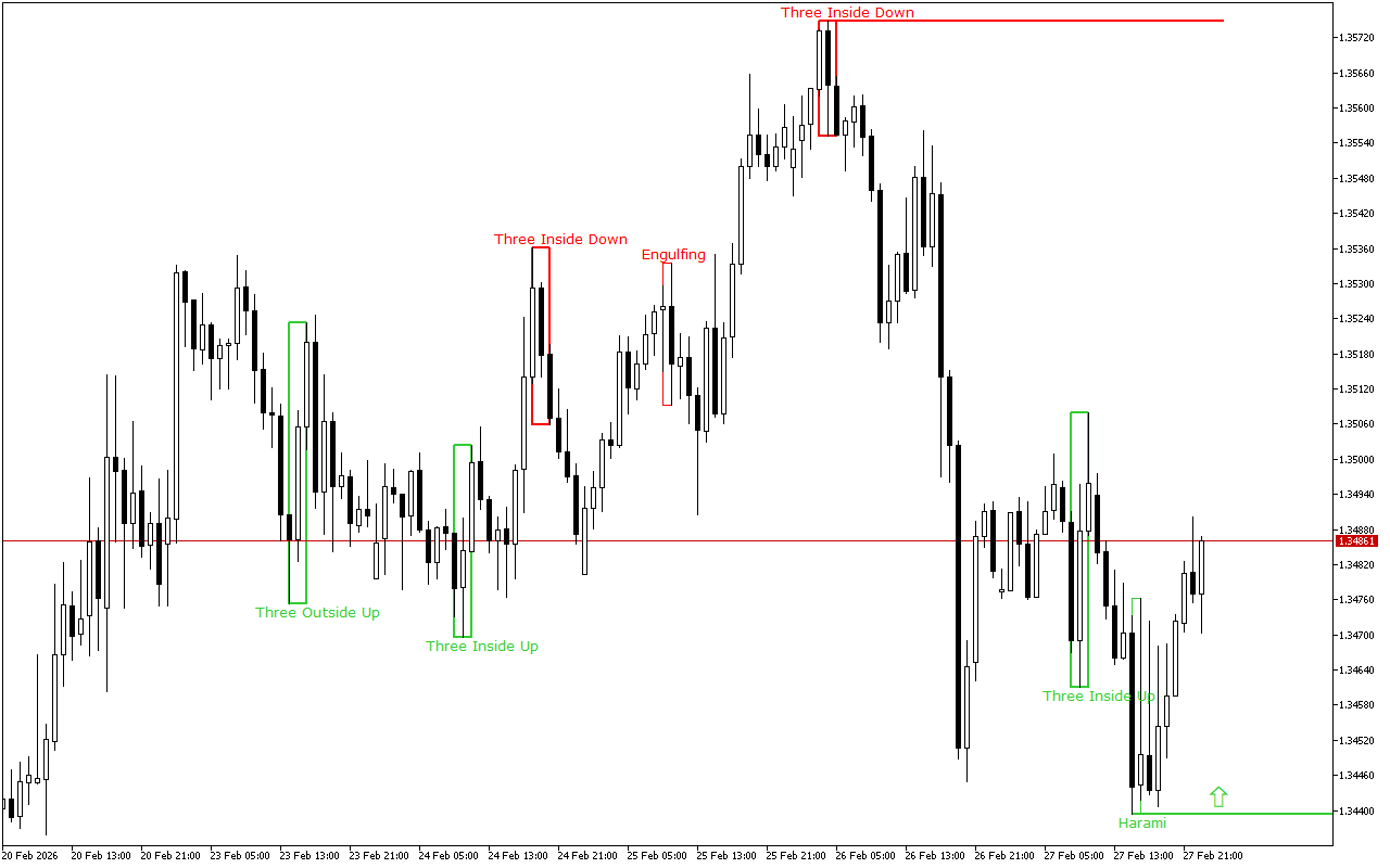 Ce niveau a été formé par le modèle haussier Harami. Le modèle se compose de deux bougies japonaises, où la deuxième bougie avec un corps plus petit se trouve à l’intérieur du corps de la première bougie.