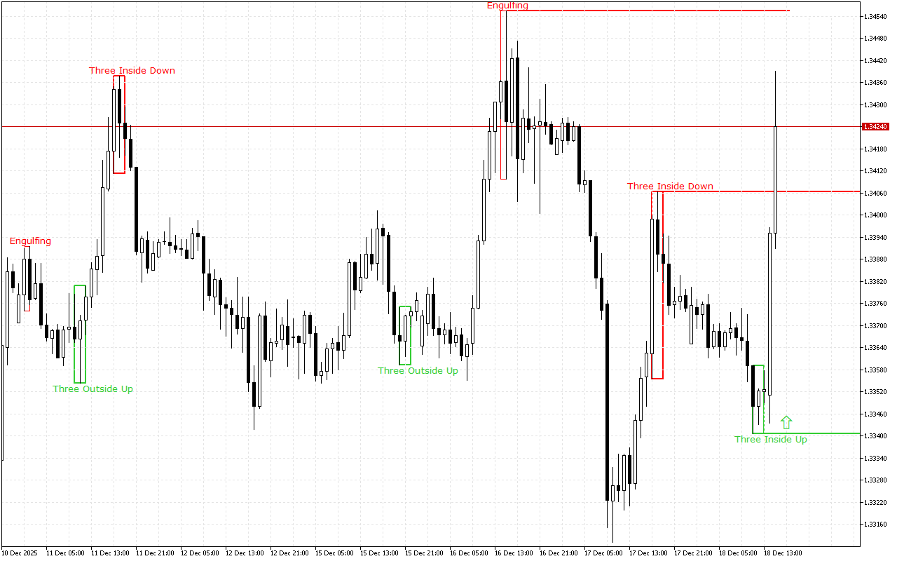 Бул деңгээл Three Inside Down үлгүсү менен түзүлгөн. Бул үлгү үч жапон шамынан турат: биринчи шамдын кыска кара чыныгы денеси бар, экинчи шамдын да кара чыныгы денеси бар жана толугу менен биринчи шамдын корпусунун ичинде, үчүнчү шам да кара жана дененин астынан жабылат. экинчи шамдын.